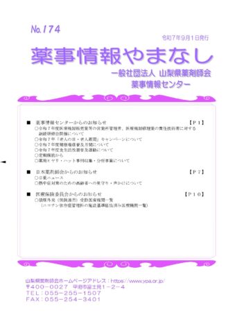 薬事情報やまなし令和7年9月1日発行No.174【pdf】