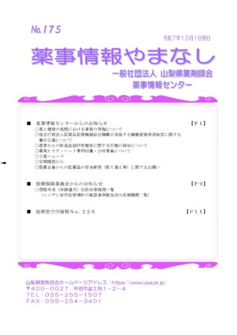 薬事情報やまなし令和7年10月1日発行No.175【pdf】