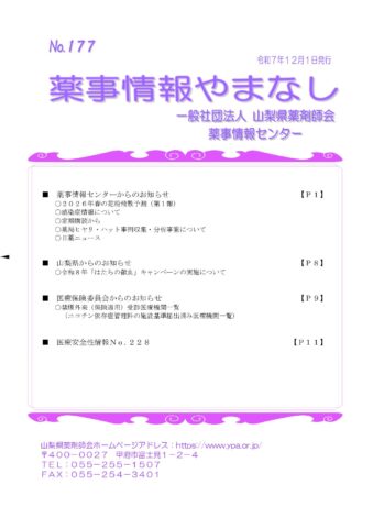 薬事情報やまなし令和7年12月1日発行No.177【pdf】