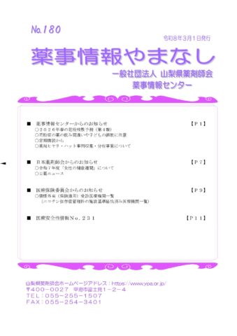 薬事情報やまなし令和8年3月1日発行No.180【pdf】
